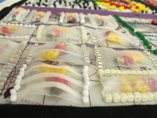 מדברי רחלי על היצירה: חאן ארינבה, רמת הגולן 12 אוקטובר 1973, שתיים לפנות בוקר. 13 חיילי פלוגת חה"ן של חטיבת הצנחנים נהרגו מפגיעת אר.פי.גי בזחל"ם חומרי החבלה עליו נסעו. ואיך הגעתי לעסוק בנושא? כשבוע לפני מבצע "עופרת יצוקה" סיירה בתי החיילת ברמת הגולן וצפתה על עמק הבכא וחאן ארינבה. בצרוף מקרים קבלתי באותו יום מצגת של עוזי טאובר בנושא. חפשתי תמונה של חאן ארינבה בגוגל, ובין התמונות הופיעה תמונתו של בני לינדר. את בני אני "מכירה" מלוח הזכרון ביד לבנים ברחובות שם אני מנחה קבוצות תלמידים. (התלמידים קוראים "דפי יזכור" על חללי בית ספרם ומניחים פרחים ליד שמם בלוח הזכרון) כיוון שבני היה מגדל פרחים מיודפת, בררתי אם עמי שידלוביצקי, מנהל סניף החברה להגנת הטבע ברחובות, שעסק בפרחים מכיר אותו. הסתבר שלא רק שעבדו יחד, אלא שעמי היה בחאן ארינבה כשהזחל"ם התפוצץ. בזחל"ם היה גם חברו הטוב של עמי, אבי רמון. כולם בעסקי פרחים. המפה המנויילנת ששימשה את עמי בחאן ארנבה ב 1973 שימשה בסיס לעבודה. מתוך הספר "נתיבים בשדה" שיצא לזכרם הבאתי חלק מההספד שנשא המ"פ מרדכי כהן קדמון "הראשון שהבאנו למנוחת עולם, בני מיודפת, היה מגדל פרחים והאחרון שבהם, אבינועם, היה מגדל ומסדר פרחים. יש בכך אולי סמל לדמותו ולאופיו של החייל הישראלי" עצוב, והחיים ממשיכים הערת העורך: בקרב חאן ארנבה קיבלו מספר לוחמים צל"שים ועיטורים. פרטים בכתבה.